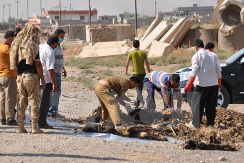 Người dân Iraq đưa xác các nạn nhân lên khỏi một hố chôn tập thể