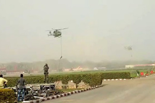 Đoạn video lan truyền trên mạng xã hội cho thấy các binh sĩ trượt xuống từ chiếc dây buộc vào trực thăng.