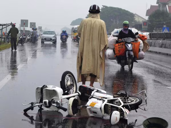 Cú tông mạnh khiến phương tiện bị húc bay, 3 nạn nhân văng ra ba hướng khác nhau. Người dân gần đó nhanh chóng gọi xe đưa bà Huệ và hai cháu đi cấp cứu trong tình trạng nguy kịch, máu chảy nhiều.