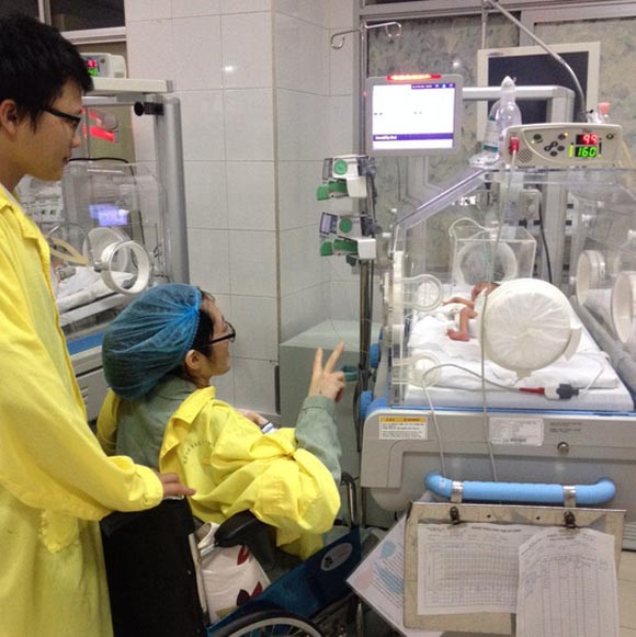 Hiện bé Gấu (con trai chị Trâm) vẫn phải thở máy, được nuôi dưỡng hoàn toàn bằng đường tĩnh mạch và dự kiến sẽ tiếp tục được chăm sóc đặc biệt cho đến khi cứng cáp, có thể tự thở. Theo các bác sĩ, với trẻ sinh non thiếu tháng nhiều như trường hợp bé Gấu có thể phải nằm viện 3 tháng. Khi mới được đưa vào Trung tâm bé nặng 1,2 kg.