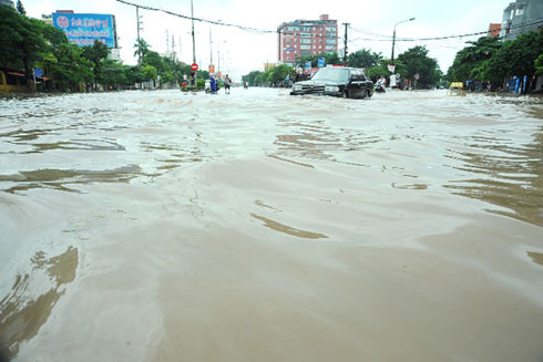 Một số khu vực ở TP Hải Dương bị ngập sâu sáng 28-8