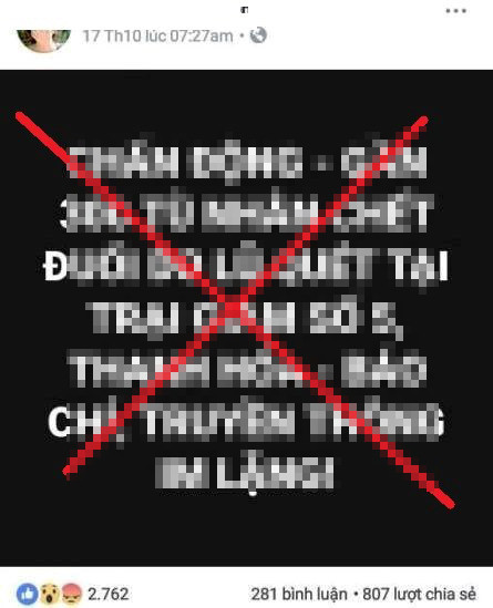 Sáng 17-10, tài khoản cá nhân trên mạng facebook với nick name T.T.N đăng thông tin có nội dung: “Chấn động gần 300 tù nhân chết đuối do lũ quét tại Trại giam số 5, Thanh Hóa - báo chí, truyền thông im lặng”.