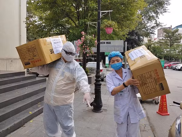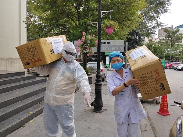 Y bác sĩ Bệnh viện Bạch Mai vận chuyển trang thiết bị bảo hộ phục vụ chống dịch Covid-19