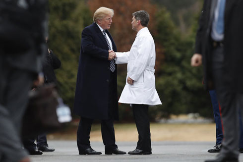 Bác sĩ Nhà Trắng Ronny Jackson bắt tay tạm biệt Tổng thống Donald Trump sau buổi kiểm tra sức khỏe ngày 12-1