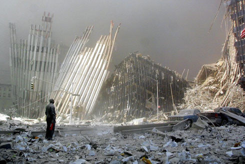Tòa tháp đôi Trung tâm thương mại thế giới - biểu tượng của sức mạnh kinh tế Mỹ trở thành đống đổ nát sau vụ tấn công khủng bố 11-9-2001 khiến khoảng 3.000 người thiệt mạng