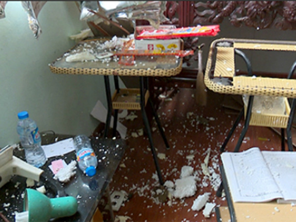Vụ nổ gây sức ép làm vỡ kính và hư hỏng nhiều đồ vật trong nhà