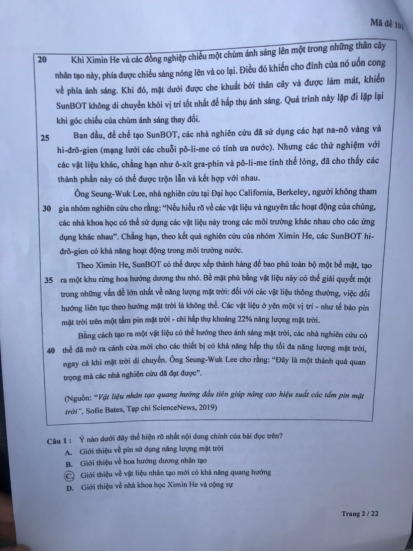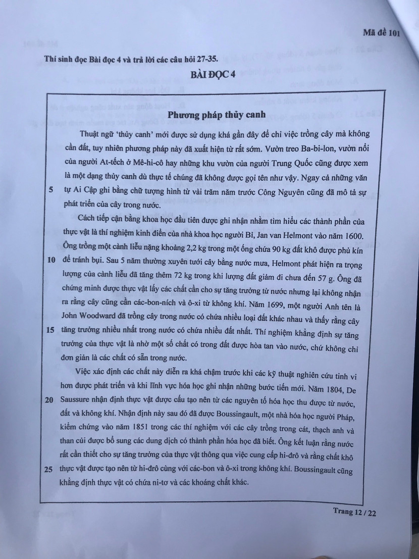 Điểm nổi bật ở phần Đọc hiểu là có dung lượng rất dài (chiếm 15/22 trang) với 35 câu hỏi, các chủ đề đa dạng. Trong đó, 4 bài đọc với 4 chủ đề mang “màu sắc Bách khoa”, nội dung bám sát các ngành học của trường: Vật liệu quang hướng; Công nghệ thông tin; Môi trường và Phương pháp canh tác nông nghiệp. Phần này tập trung đánh giá kỹ năng đọc cùng với năng lực phân tích, lý giải văn bản, khái quát, tổng hợp, biện luận về logic và suy luận từ văn bản. Hầu hết các bài đọc đều là văn bản dịch từ các tài liệu chuyên khảo nước ngoài, ngữ liệu không có quá nhiều từ chuyên ngành nhưng có nhiều khái niệm mới so với học sinh THPT.