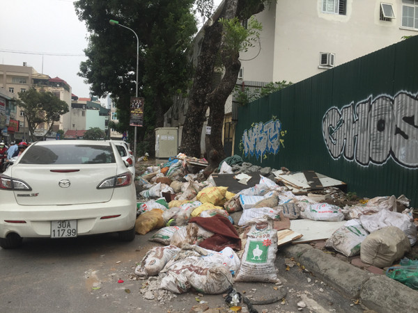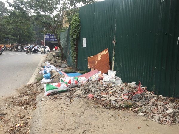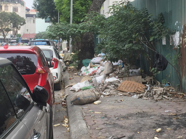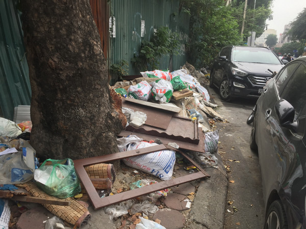 Chưa hết, cũng dọc đoạn phố dài chưa tới 500m này còn là nơi đổ trộm lý tưởng của những kẻ vô ý thức. Ngay cạnh bãi xe chui là hàng đống rác thải, bao bì đất trạc được vứt bừa bãi không biết từ bao giờ. Thậm chí nó cũng biến thành nơi tập kết vật liệu xây dựng mà không bị ai xử lý.