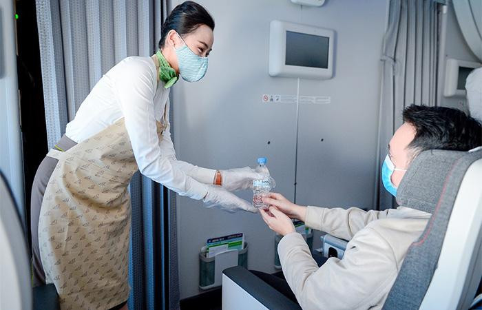 Đối với dịch vụ trên không, hãng điều chỉnh tiêu chuẩn suất ăn, chỉ cung cấp đồ uống, nhằm hạn chế tối đa khả năng lây nhiễm chéo thông qua tiếp xúc.
