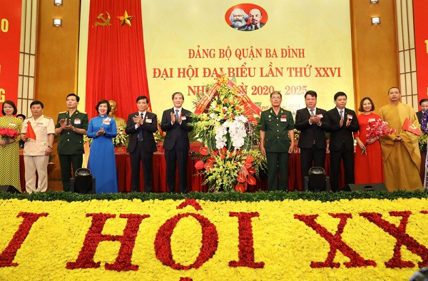 Dự và phát biểu chỉ đạo tại đại hội, Ủy viên Bộ Chính trị, Bí thư Thành ủy Hà Nội Vương Đình Huệ chúc mừng và biểu dương những kết quả, thành tích mà Đảng bộ và nhân dân quận Ba Đình đạt được trong nhiệm kỳ qua, đóng góp tích cực vào việc thực hiện Nghị quyết Đại hội lần thứ XVI Đảng bộ thành phố.