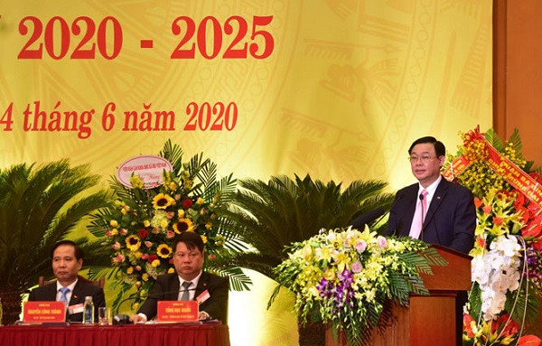 Bí thư Thành ủy Hà Nội Vương Đình Huệ phát biểu tại đại hội