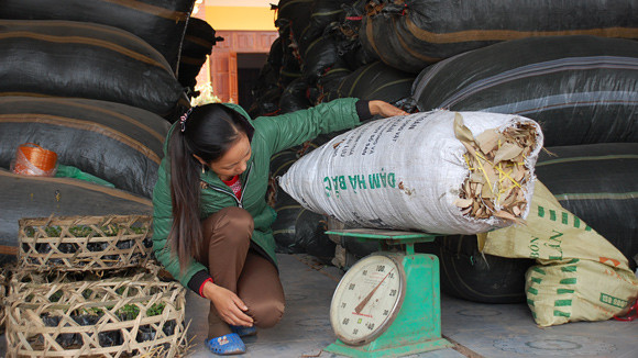 Nhà nông, kiếm được dăm chục nghìn đồng một ngày là to lắm. Mà lại chẳng mất tí vốn, tí sức nào vậy nên không chỉ cụ Lưu mà hầu như người dân thôn Áp ai cũng phấn khởi với cái thương vụ lạ lùng này. Các vườn vải rộng hàng mẫu mọi khi ùn hàng đống lá khô thì nay sạch trơ. Người ta thi nhau thu gom lá rụng, phơi khô đóng vào bao tải rồi ùn ùn chở đến các điểm thu gom đông như trảy hội. “Tôi thấy người ta mua thì mình bán thôi, cũng chẳng biết họ mua để làm gì” - chị Hoàng Thị Hoạt, một người dân ở thôn Kim Tiến hồn nhiên.