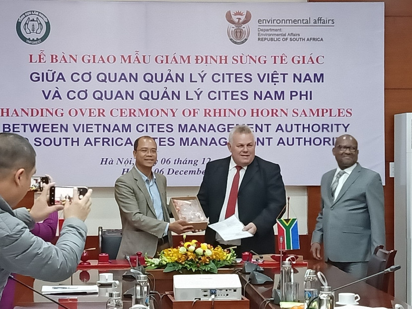Kể từ thời điểm ký kết Biên bản ghi nhớ đến nay, đây là lần thứ 4 Việt Nam tiến hành bàn giao mẫu vật giám định sừng tê giác từ các vụ bắt giữ, tịch thu cho phía Nam Phi nhằm thực hiện giám định, xác định nguồn gốc xuất xứ, phục vụ công tác điều tra tội phạm hiệu quả. Hoạt động này nằm trong khuôn khổ hợp tác giữa Việt Nam và Nam Phi, đồng thời tuân thủ theo quy định tại Nghị quyết 9.14 về bảo tồn và thương mại mẫu vật tê giác châu Á, châu Phi của Công ước về buôn bán quốc tế các loài động vật, thực vật hoang dã nguy cấp (CITES).