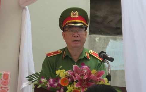 Thiếu tướng Đinh Văn Toản phát biểu tại buổi lễ Bàn giao nhà tình nghĩa cho thân nhân liệt sỹ.