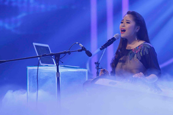 Xinh đẹp và duyên dáng trong chiếc váy hiện đại, Nguyễn Kiều Anh khiến người nghe “nổi da gà” với giọng hát luyến láy ngọt ngào cùng ngón đàn tranh đầy cảm xúc với tác phẩm world music "Ngồi tự song đào". Đây là sự kết hợp giữa nhạc điện tử, đàn tranh và dân ca quan họ Bắc Ninh. Không khó hiểu khi phần trình diễn của Kiều Anh nhận được “cơn mưa” lời khen của giám khảo cũng như sự thích thú của khán giả.
