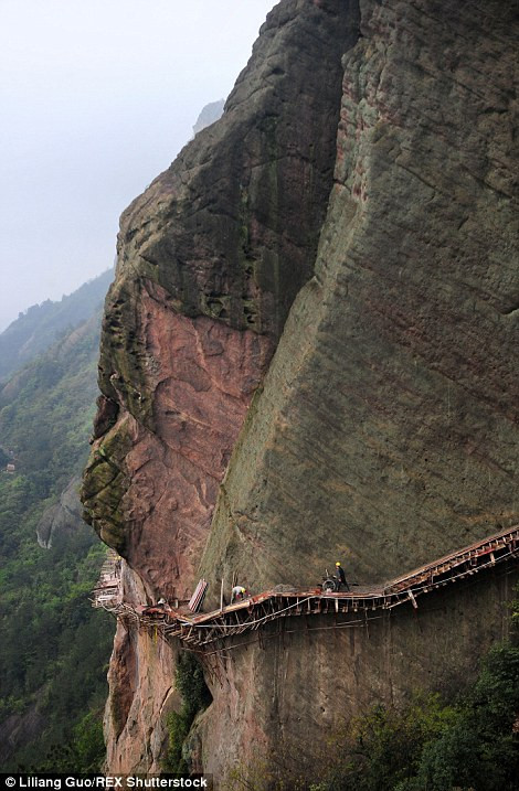 Bắt đầu khởi công từ năm 2011, con đường vách núi dài gần 2km ở Pingjiang County, tỉnh Hồ Nam Trung Quốc đang được các nhà chức trách nước này hy vọng sẽ thu hút được hàng ngàn du khách tới đây ngắm cảnh. Tương lai mở ra có vẻ sáng lạn nhưng thực tế việc xây dựng lại vô cùng nguy hiểm.