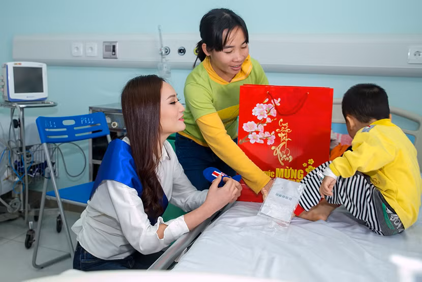 Nối dài chuỗi hoạt động thiện nguyện kể từ sau khi đăng quang ngôi vị “Nữ hoàng đá quý Việt Nam 2016”, người đẹp Nguyễn Thị Oanh vừa có chuyến thăm và tặng quà cho các bệnh nhi có hoàn cảnh khó khăn tại bệnh viện Nhi Trung ương nhân dịp Tết Đinh Dậu sắp tới.