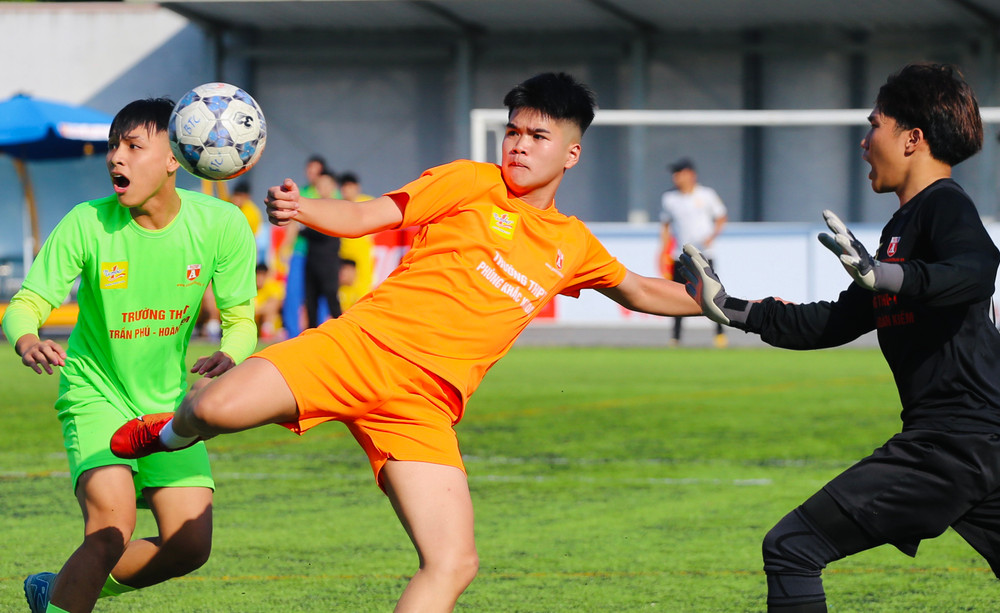 ANTD.VN - Pha lập công của Nguyễn Đình Minh Nghĩa (số 8) ở phút 12 định đoạt trận đấu, giúp THPT Phùng Khắc Khoan - Đống Đa vượt qua THPT Trần Phú - Hoàn Kiếm, ghi tên vòng 1/16 Giải bóng đá học sinh THPT Hà Nội - An ninh Thủ đô lần thứ XXIV năm 2025 Cúp Number 1 Active.