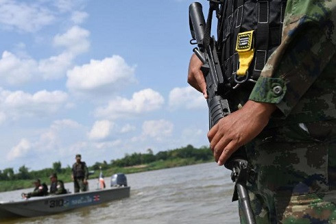 Các nhân viên hải quân Thái Lan trên một chiếc thuyền trong một cuộc tuần tra dọc theo sông Mekong giáp với Thái Lan và Lào ngày 23-5 – (Nguồn: CNN)