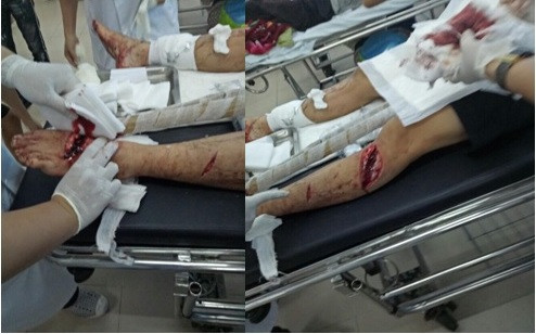 Theo các bác sỹ, nạn nhân Cường bị nhiều vết thương hở ở phần mềm, có thể đã bị đứt gân, mất rất nhiều máu và đang được chờ mổ. Từ khi tiếp nhận nạn nhân, các bác sỹ đã phải tích cực dùng thuốc cầm máu cho nạn nhân Cường và truyền hơn 1 lít máu để giữ tính mạng.