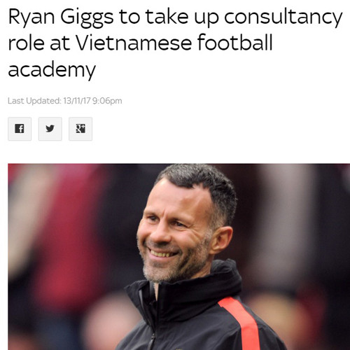 Vào ngày 20 tháng 11 tới, Quỹ Đầu tư và phát triển tài năng bóng đá Việt Nam (PVF) thuộc Tập đoàn Vingroup sẽ chính thức bổ nhiệm huyền thoại Man United Ryan Giggs vào vị trí Giám đốc Bóng đá của Trung tâm.