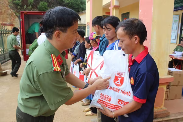 Báo ANTĐ kịp thời chia sẻ với đồng bào vùng bão lũ, góp phần tạo hình ảnh đẹp trong lực lượng CAND. Trong ảnh: Tổng Biên tập Báo ANTĐ Nguyễn Thanh Bình trao quà tận tay đồng bào Mù Cang Chải (Yên Bái) ngay sau trận lụt lịch sử