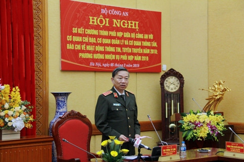 Nhấn mạnh, năm 2018, lực lượng Công an đã hoàn thành rất xuất sắc nhiệm vụ đảm bảo an ninh, trật tự, đóng góp quan trọng cho sự nghiệp phát triển bền vững, ổn định của đất nước, đặc biệt việc tổ chức Hội nghị thượng đỉnh giữa Mỹ và Triều Tiên vừa qua đã tăng cường uy tín, vị thế của Đảng, Nhà nước, sự đồng thuận và niềm tin của toàn dân; đồng chí Bộ trưởng Tô Lâm bày tỏ, trong quá trình đó, hoạt động thông tin tuyên truyền, hoạt động báo chí đã góp phần đặc biệt quan trọng vào những thành quả chung của đất nước; thực sự phát huy tốt vai trò thông tin, tuyên truyền chủ trương, đường lối của Đảng, chính sách, pháp luật của Nhà nước; góp phần định hướng dư luận xã hội, tăng cường sự đồng thuận, ủng hộ, sức sáng tạo của toàn Đảng, toàn dân, toàn quân trong sự nghiệp xây dựng và bảo vệ Tổ quốc; chủ động, sáng tạo trong thông tin, tuyên truyền đối ngoại, quảng bá hình ảnh đất nước, con người Việt Nam ra thế giới, tích cực đấu tranh phản bác các quan điểm sai trái, xuyên tạc của các thế lực thù địch; qua đó, góp phần bảo vệ Đảng, Nhà nước, nhân dân và nâng cao uy tín, vị thế của Việt Nam trên trường quốc tế.