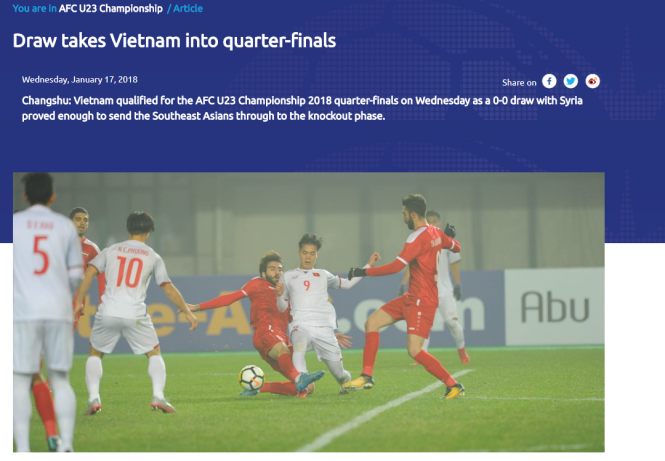 Bài báo này nhận định, dù U23 Việt Nam phải chịu sức ép liên tục từ các cầu thủ Syria nhưng các học trò HLV Park vẫn đứng vững: "Các cầu thủ ở hàng phòng ngự đã chiến đấu quả cảm để giành lấy 1 điểm cùng tấm vé vào tứ kết AFC U23 2018".
