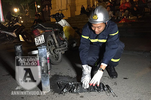 Lực lượng CS PCCC - CAQ Hoàn Kiếm cũng đã thu giữ nhiều vỏ pháo sáng
