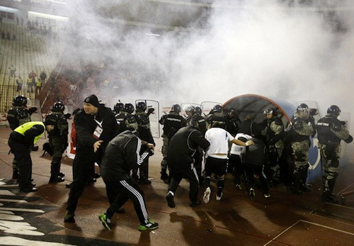 Cách đó 1 hôm, cảnh tượng tương tự cũng xảy ra ở trận derby Belgrade tại Serbia. Trận đấu này nhanh chóng bị bao phủ bởi khói bụi do pháo hoa được bắn xuống từ phía khán đài. Sự cố này khiến trận đấu liên tục phải ngừng thi đấu vì pháo hoa được CĐV quá khích ném xuống sân. Lực lượng cứu hỏa và cảnh sát đã có mặt kịp thời để dập lửa và đưa các cầu thủ vào đường hầm an toàn.