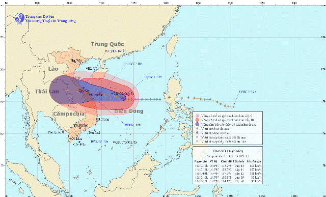 Bão mạnh, phức tạp, đến chiều tối ngày hôm nay, Trung tâm DBKTTV Trung ương vẫn đưa ra dự báo một số xác suất bão sẽ đổ bộ. Trong đó, 60% khả năng, bão sẽ đi vào khu vực các tỉnh từ Quảng Nam đến Quảng Bình. Thời gian đổ bộ khoảng sáng đến trưa ngày 15