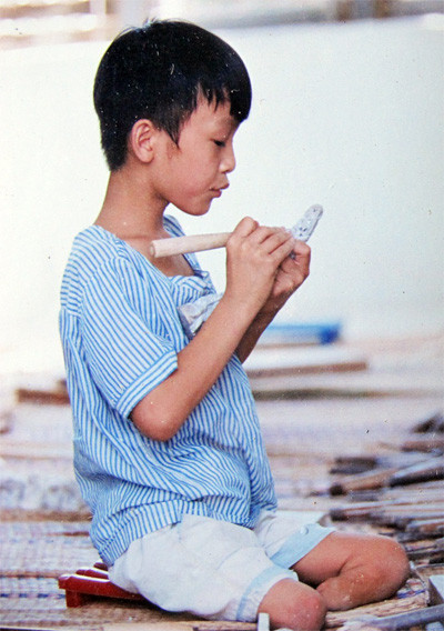 Câu chuyện đi bằng đôi chân tật nguyền của Chiến đã thấm đầy những giọt nước mắt đắng lòng của cả gia đình. Người lớn thì nhìn Chiến bằng đòi mắt dò xét, còn lũ trẻ thì cũng không muốn chơi với một đứa không chân. Nhiều lúc nhìn bạn bè chơi nhảy dây, lò cò, đánh quay, đánh đáo Chiến vô cùng tủi thân. Nhìn con, thương lắm nhưng ông bà vẫn quyết: “Nó không chơi được như bạn thì phải cố mà học cho bằng bạn”. Bà Quế kể lại: “Thấy tôi đăng ký cho cháu đi học ai cũng bảo, thế có cõng con đi học cả đời được không? Cháu nó không được như người bình thường nhưng gia đình vẫn quyết cho cháu ăn học đầy đủ. Để Chiến không cảm thấy mặc cảm”. Và cứ như thế đằng đẵng là những tháng ngày, hai vợ chồng bà thay nhau cõng con đi học rồi cõng về.
