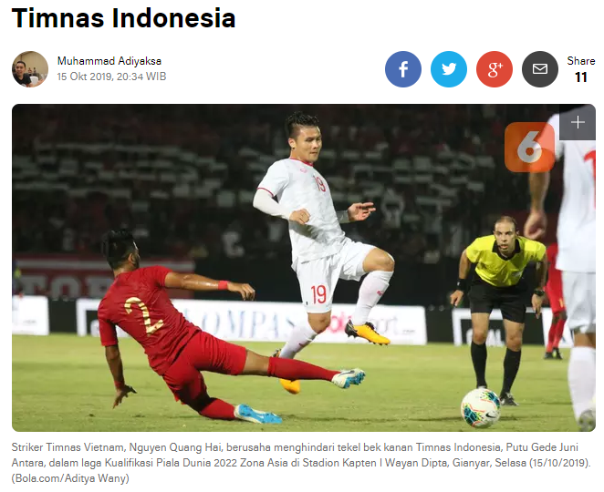 Tờ Bola Sports thì cảm thán: "Đội tuyển quốc gia Indonesia một lần nữa phải nuốt kết quả tồi tệ, thất bại ở vòng loại World Cup 2022 sau khi gặp Việt Nam tại sân vận động I Wayan Dipta".
