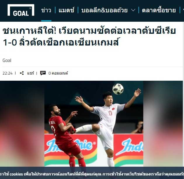 Trong khi đó, tờ Goal phiên bản Thái Lan ấn tượng: "Việt Nam là đội duy nhất vào bán kết chưa để thua bất cứ trận nào".