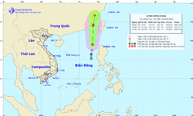 Trung tâm Dự báo khí tượng thủy văn quốc gia thông tin, sáng nay, 10/8, áp thấp nhiệt đới trên Biển Đông đã mạnh lên thành bão, cơn bão số 3 có tên quốc tế là Mekkhala, ở cường độ cấp 8, giật cấp 10, di chuyển theo hướng Bắc.
