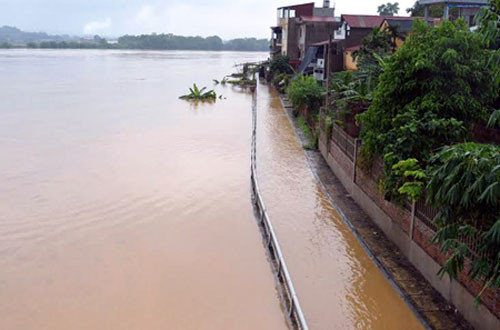 Mưa lớn khiến mực nước trên sông Thao tại Yên Bái dâng cao (Ảnh: VNE)