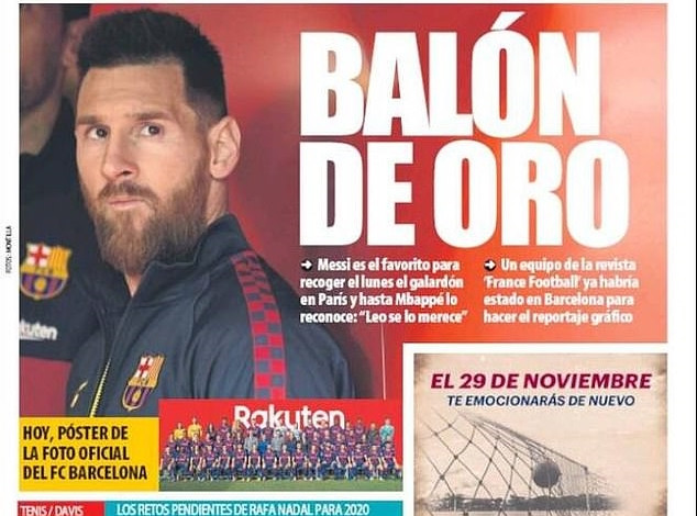 Mới nhất, tờ Mundo Deportivo của Tây Ban Nha khẳng định Messi sẽ vượt qua hai ứng cử viên khác là Ronaldo và Van Dijk để sở hữu Quả bóng Vàng thứ 6 trong sự nghiệp.