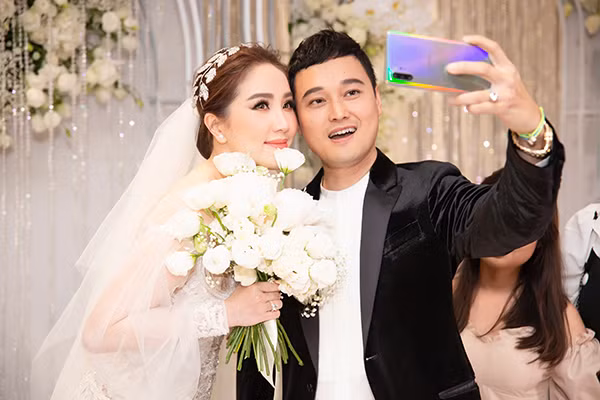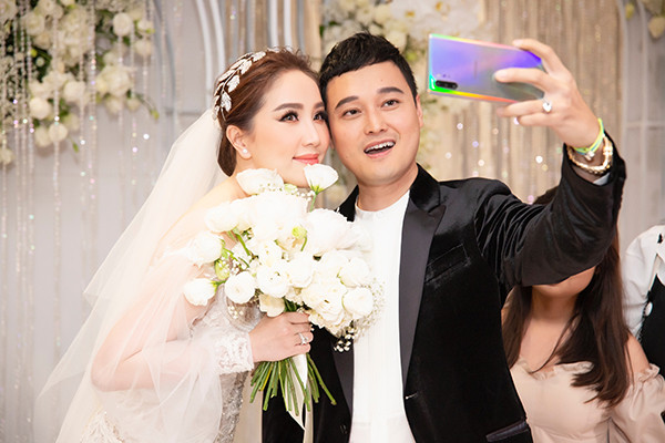 Cô tâm sự: "Hơn mười mấy năm qua em có thể đứng trước hàng trăm ngàn khán giả thì không run, nhưng giờ em run dữ lắm". Nói đến đó Bảo Thy nghẹn ngào khóc còn chú rể Phan Lĩnh ôm vai động viên vợ.