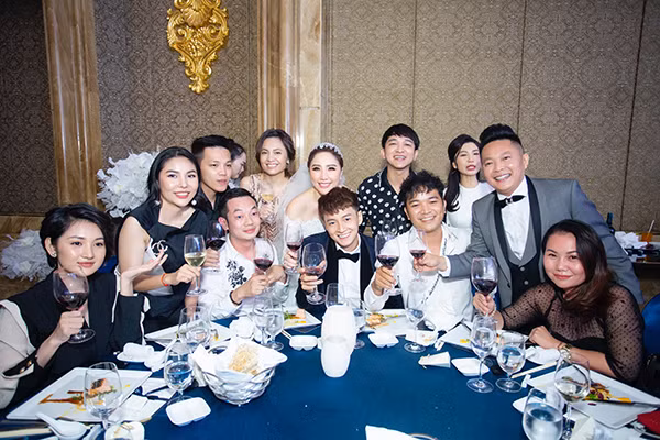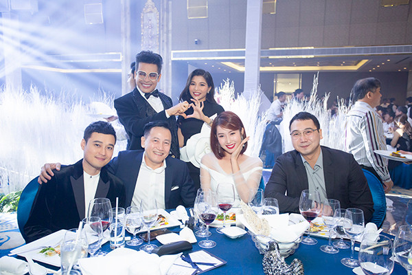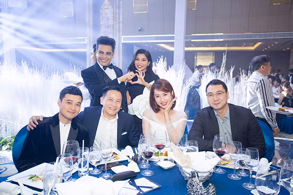 Sau các nghi thức quen thuộc như rót rượu, cắt bánh... và kết thúc phần lễ để buổi tiệc bắt đầu, các nghệ sĩ và khách mời đã cùng nhau trổ tài catwalk và "quẩy" hết mình với vợ chồng Bảo Thy.
