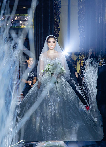 Cô dâu Bảo Thy xuất hiện từ ngoài vào trong tiếng nhạc du dương. Chú rể từ trên sân khấu dang rộng cánh tay đón Bảo Thy bước lên. Bảo Thy cảm ơn đến các thế hệ ông bà, cha chú, anh chị, bạn bè đã đến chia vui với vợ chồng cô.