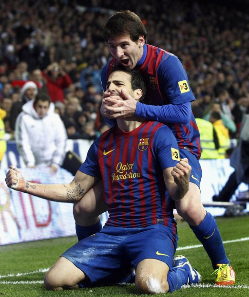 Leo Messi chia vui với Fabregas