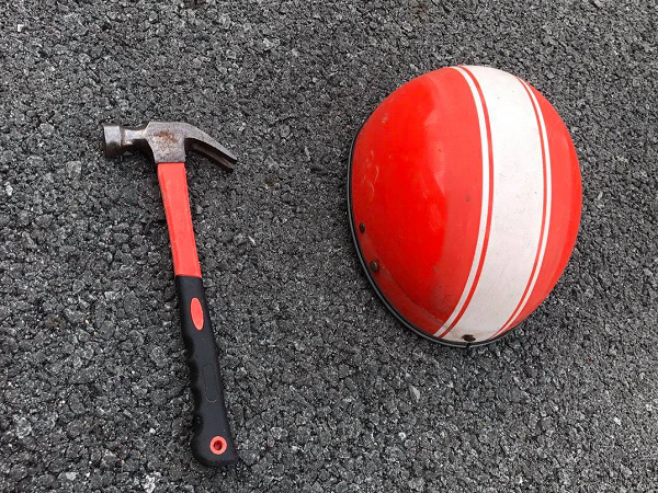 Những vật dụng bọn cướp dùng đánh nạn nhân rồi cướp xe.