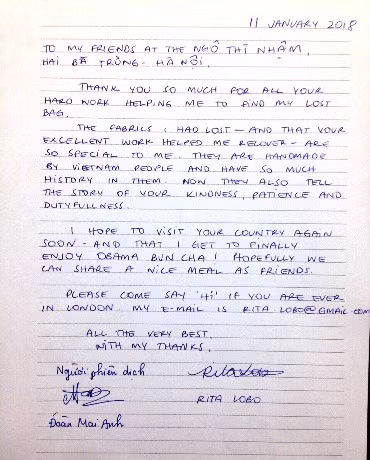 Xúc động trước tinh thần trách nhiệm và sự thân thiện của các chiến sĩ Công an Việt Nam, chị Rita đã viết thư bày tỏ tấm lòng cảm ơn khi nhận được lại hành lý đã bị thất lạc