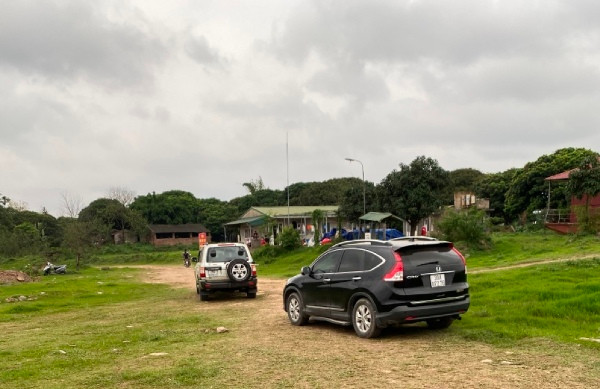Rất đông ô tô, xe máy di chuyển, tụ tập ở khu vực bãi giữa sông Hồng