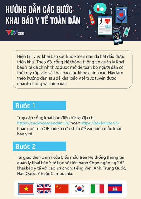 Theo hướng dẫn, để khai báo sức khỏe, người dân có thể truy cập trang tokhaiyte.vn hoặc suckhoetoandan.vn/khaiyte; cũng có thể tải app NCOVI và điền thông tin theo các bước hướng dẫn.