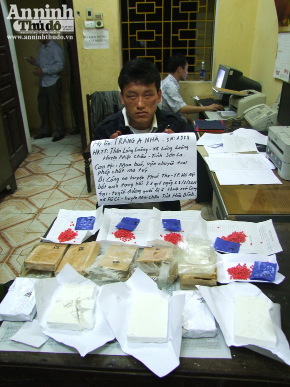 Công an huyện Phúc Thọ, thành phố Hà Nội vừa điều tra khám phá chuyên án vận chuyển, buôn bán trái phép ma túy, bắt quả tang đối tượng Tráng A Nhà (SN 1988), ở bản Lóong Luông, xã Lóong Luông, huyện Mộc Châu, Sơn La tàng trữ trái phép 5 bánh heroin và 5 túi nilon chứa 1000 viên ma túy tổng hợp.
