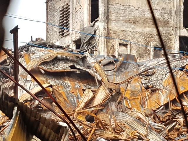 Bên trong khu vực kho bị cháy của Công ty Rạng Đông