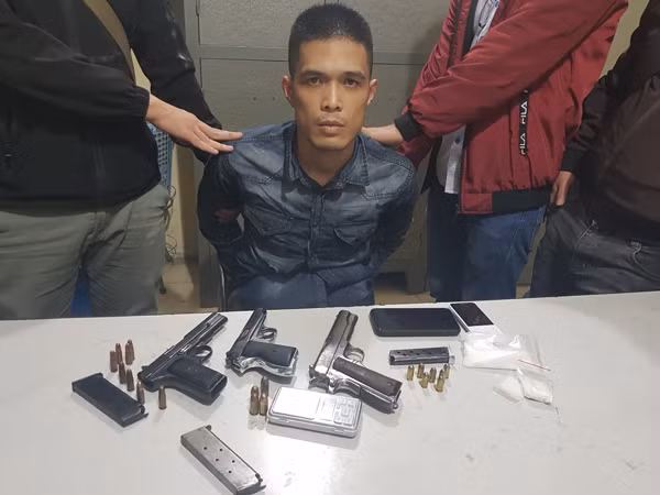 Tại thời điểm này, lực lượng công an đã thu giữ 63,925 gam ma túy tổng hợp các loại, 1 khẩu súng K54, băng đạn có 4 viên trong đó có 1 viên đã lên nòng. Tiến hành khám xét khẩn cấp nơi ở của Tùng, cơ quan công an phát hiện và thu giữ thêm 3 khẩu súng, 4 hộp tiếp đạn, 24 viên đạn, 1 quả lựu đạn, 1 cân điện tử, 2 điện thoại di động và 30 triệu đồng.