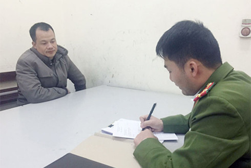 Cơ quan công an ghi lời khai đối tượng Thắng