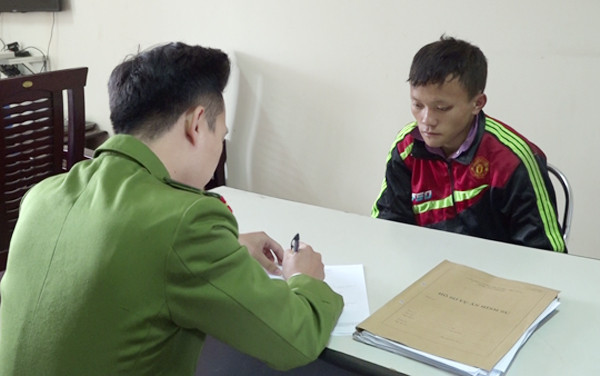 Cơ quan CSĐT Công an tỉnh Lào Cai lấy lời khai đối tượng Giàng A Tếnh